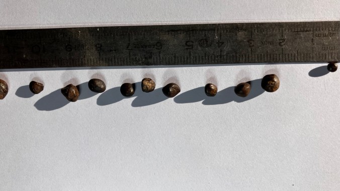 Nous avons trouvé l’année dernière un gisement de sphérules vitrifiées que nous n’avons pu identifier. Les sphérules sont de petites billes géologiques de 1 à 5 mm de diamètre environ, de couleur noire.
