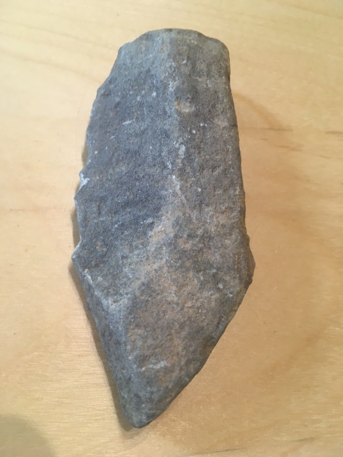 Pointe de lance ou de flèche en pierre polie, et perçoir ?
