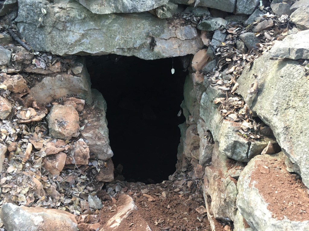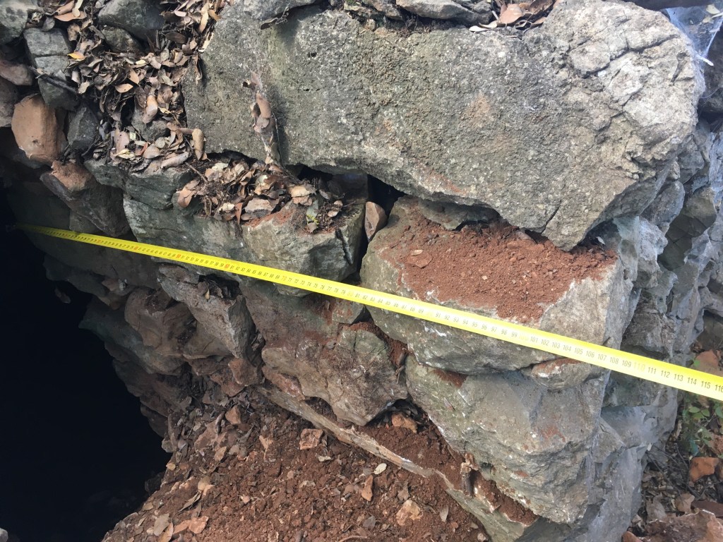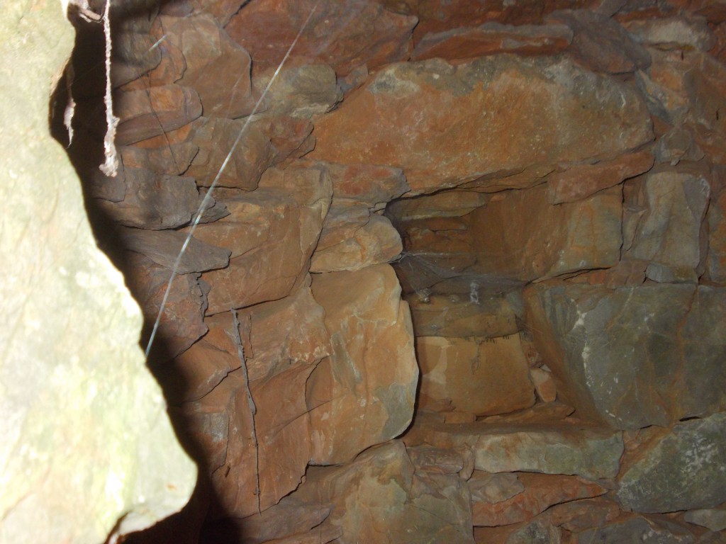 L’effondrement l’avait en quelque sorte scellée. Ah oui, je tiens à souligner que certains membres de l’association sont plus agiles que d’autres ! A l’intérieur, pas grand-chose… Une petite niche, et un bloc posé sur le sol, qui fait un trône parfait pour régner dans ce palais. Un tour sur nous-même permet de repérer les habitantes des lieux : de belles araignées que l’on n’aimerait pas avoir dans son tee-shirt. Tantôt méfiantes ou hardies, elles assistent au spectacle en grignotant des moustiques. Au vue de leur nombre, il n’y a aucun respect des normes sanitaires !